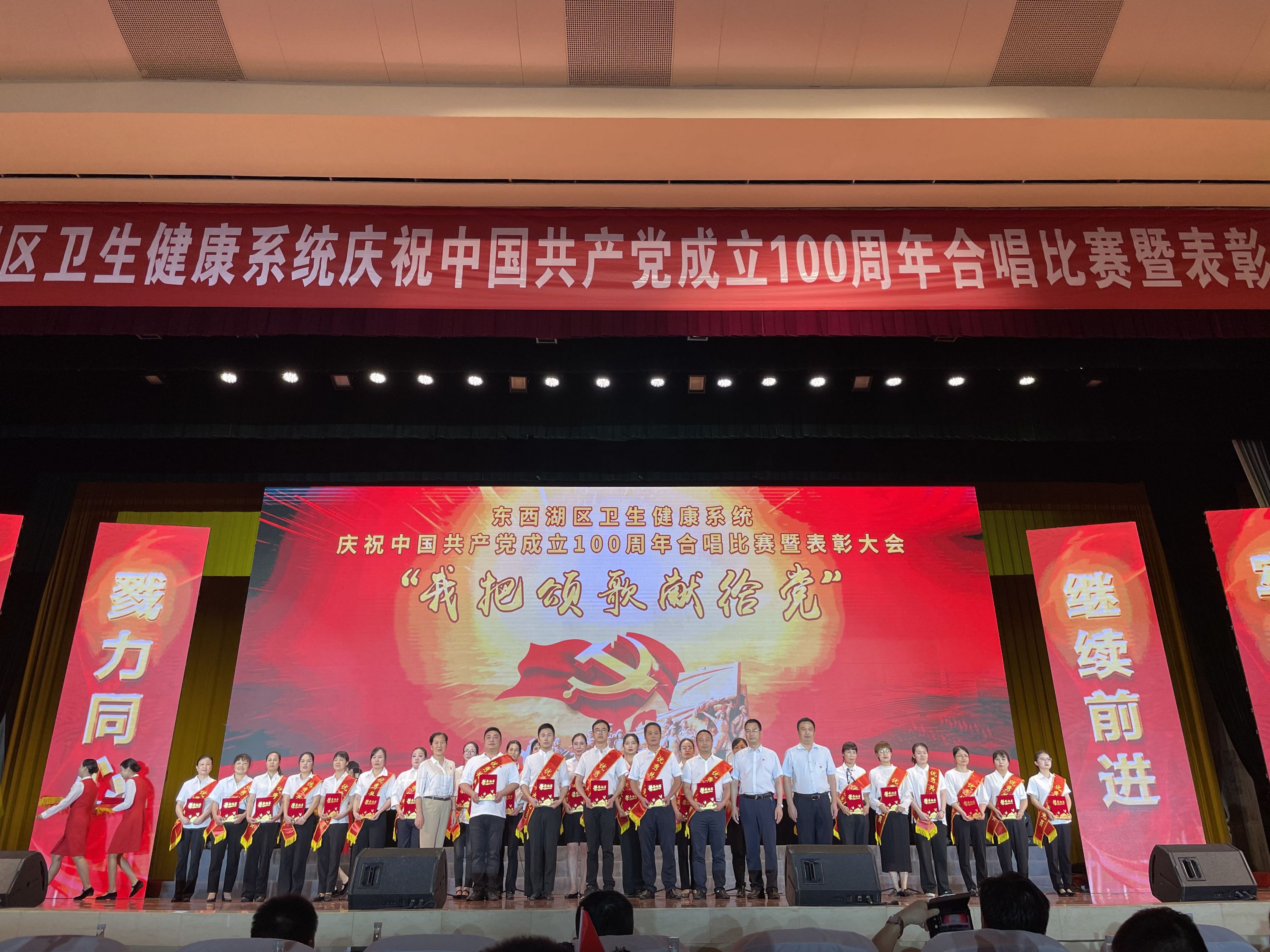 長江日報7月2日訊 7月1日晚7時30分,為慶祝中國共產黨百年華誕,由東西湖區衛生健康局主辦、協和東西湖醫院承辦的“我把頌歌獻給黨”合唱比賽暨表彰大會在區委黨校一號廳隆重舉行,向先進模范致敬,向偉大的黨獻上誠摯的祝福。醫療衛生戰線近800余名代表在現場觀看了合唱比賽暨表彰大會。