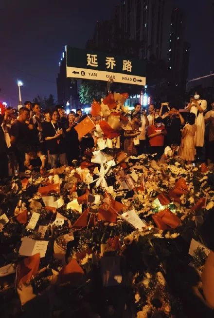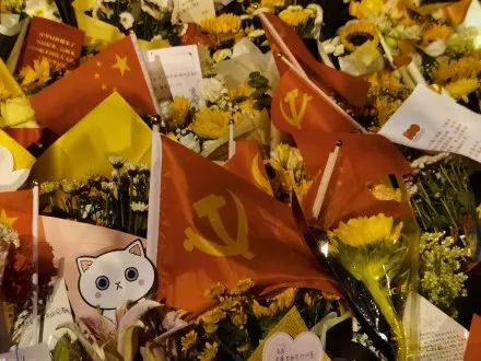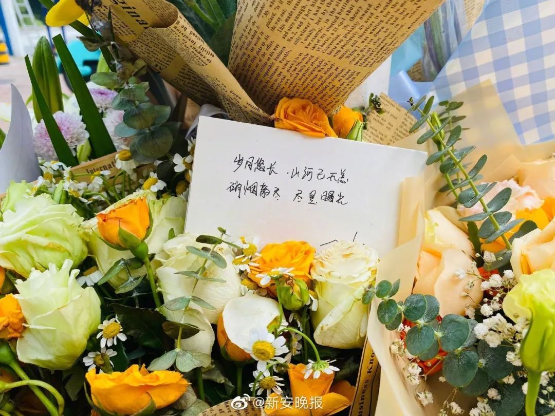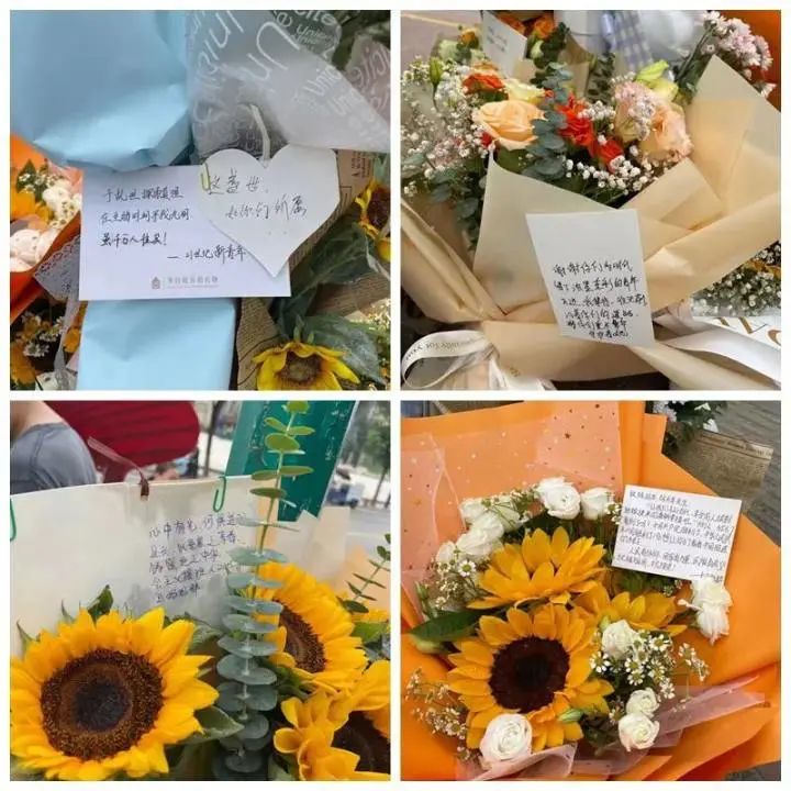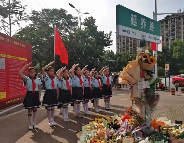 當天上午10時左右,在繁華大道與延喬路交口西南角,延喬路路牌下擺滿了鮮花,鮮花中市民在卡片上寫著這樣的寄語:“歲月悠長,山河已無恙。硝煙散盡,盡是曙光。”“這盛世如你們所愿——21世紀新青年。”“謝謝你們為時代留下濃墨重彩的青年足跡,我輩將一往無前,沿著你們的道路,替你們守護著她。”“心中有光,何懼道阻且長,以吾輩之青春,鑄盛世之中華。”