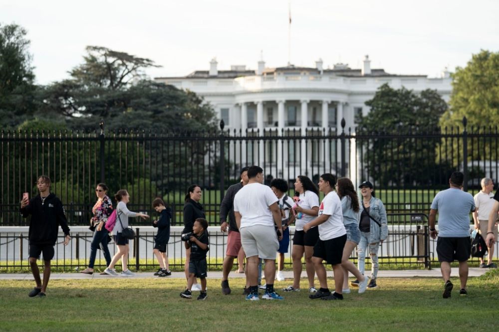 6月22日,游客在美國首都華盛頓的白宮附近游覽。(新華社記者劉杰攝)