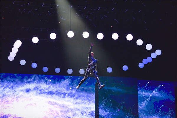 若僅僅是強時代性的歌曲排列組合,只是又一盤看似繽紛的大雜燴,過耳不過心。而本次演出最為巧妙之處在于,以歌為軸,以情為線,輔以詩朗誦、情景表演、雜技、高空威亞表演和高科技舞美等形式,讓音樂有了故事性,讓情緒有了共鳴點。