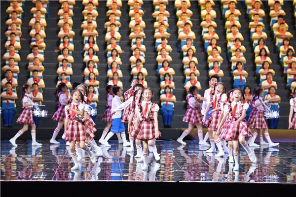 群眾演員在演中學,在學中演。超3600名的演員陣容中,有2800多名是大中小學生。超過半數的非專業青少年將每一次排練都變成一場正在進行時的大型黨課。鏡頭掃過他們青春的面龐,每首歌他們都能大聲合唱。