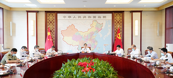 7月2日,中共中央政治局委員、中央政法委書(shū)記郭聲琨主持召開(kāi)中央政法委員會(huì)全體會(huì)議,傳達(dá)學(xué)習(xí)貫徹習(xí)近平總書(shū)記在慶祝中國(guó)共產(chǎn)黨成立100周年大會(huì)上的重要講話精神。 攝影 郝帆