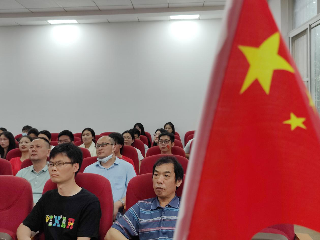 升旗儀式結束后,郭乙馬不停蹄地趕回學院,組織師生集體觀看慶祝中國共產黨成立100周年大會。觀看期間,學院師生都為習總書記的重要講話熱烈鼓掌,她說:“這一幕令人非常自豪,對于中國人的自豪,對于黨員的自豪,對于華科人的自豪。”