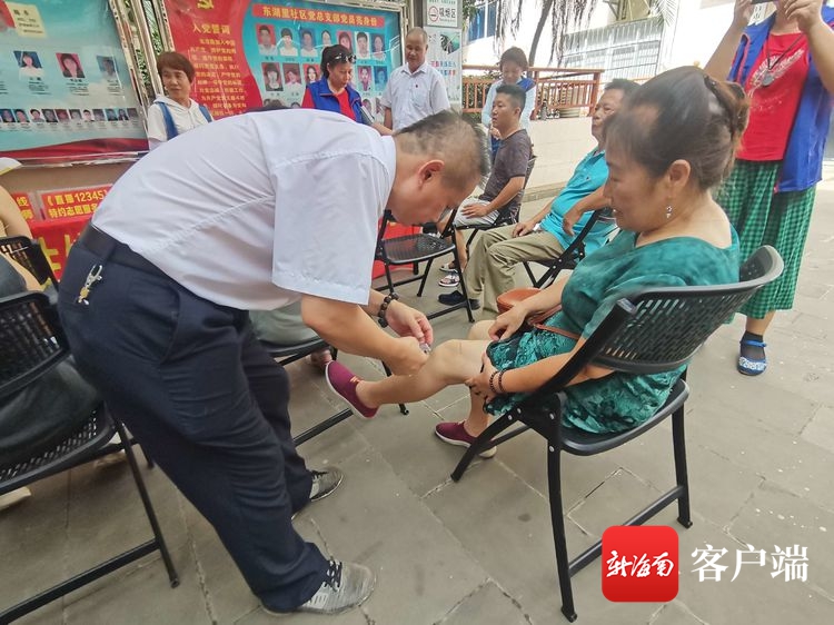 近日,海口美蘭區(qū)海府街道開(kāi)展中醫(yī)理療進(jìn)社區(qū)活動(dòng),為東湖里社區(qū)老黨員和轄區(qū)居民免費(fèi)進(jìn)行健康義診。主辦方供圖