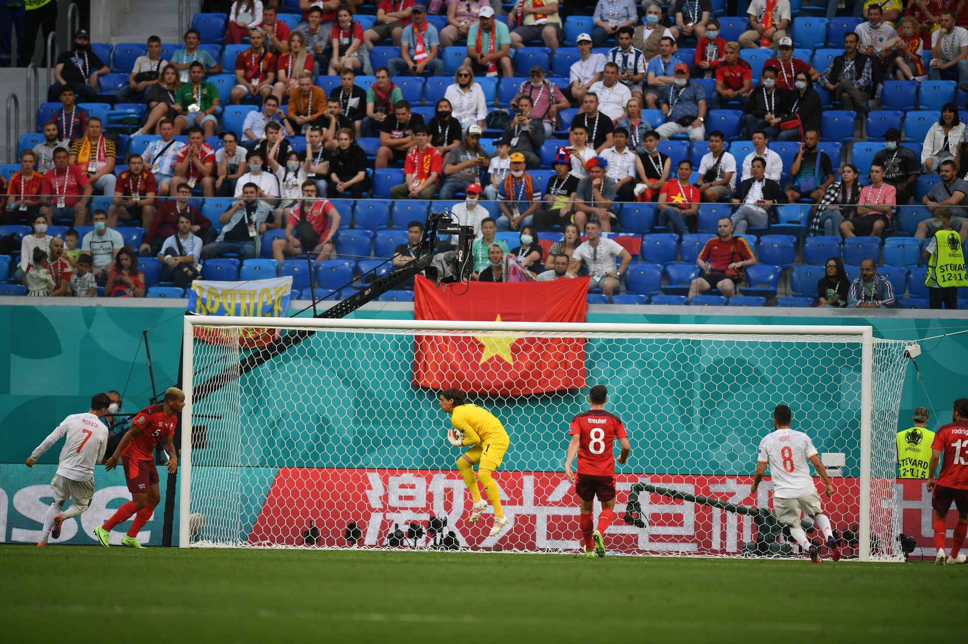 兩隊在90分鐘里戰成1:1。加時賽兩隊均無進球發生,進入點球大戰。西班牙隊首個出場的布斯克茨就將球打在立柱上,第三個出場的羅德里射門也被瑞士門將索默撲出。但瑞士這邊的點球手表現更糟糕,第二個出場的舍爾、第三個出場的阿坎吉以及第四個出場的巴爾加斯均未能罰進,西班牙在點球大戰中3:1勝出,闖進歐洲杯四強,成功拿下一張通往倫敦的“門票”。