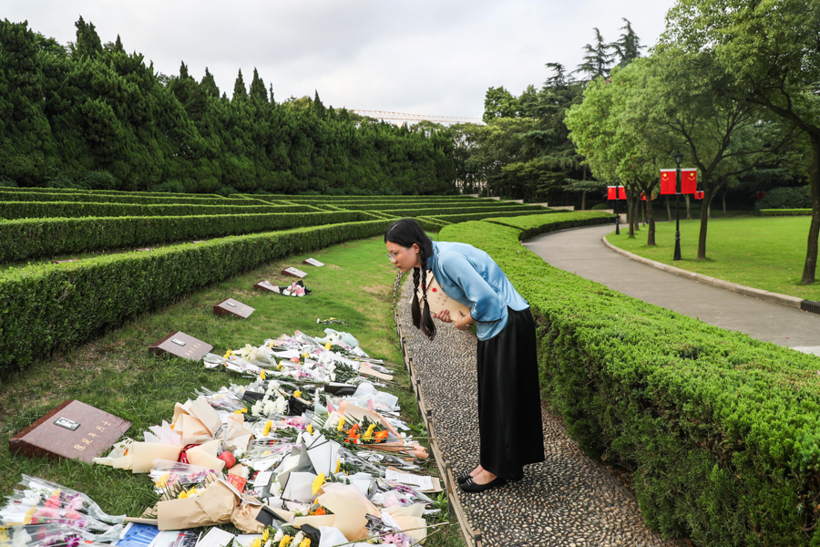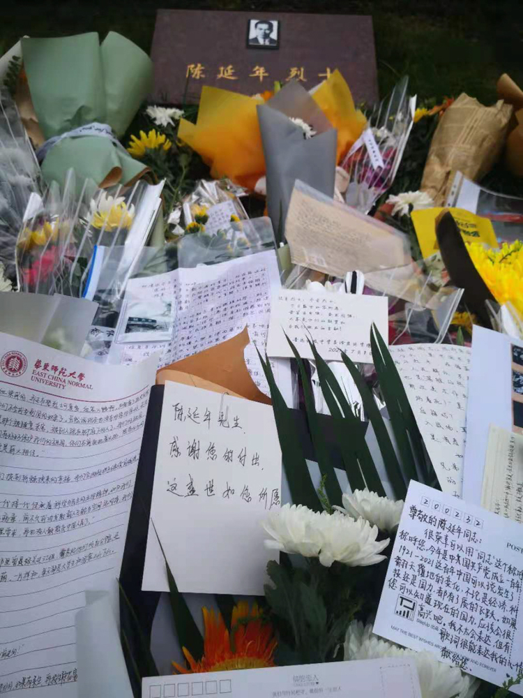 追思者敬獻的鮮花和留下的信紙鋪滿了陳延年烈士墓。新華網林艷興 攝