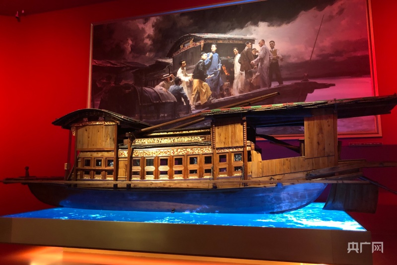 1921年的7月23日,中共一大在上海法租界望志路106號舉行,會議從7月23日開始,30日一名暗探闖入會場,會議被迫中止。大會的最后一天,代表們分批來到了浙江嘉興南湖的一艘游船上,召開最后一次會議。而為了還原此景,展館陳列的一艘南湖紅船劈波斬浪,在特效的加持下顯得尤為真實。