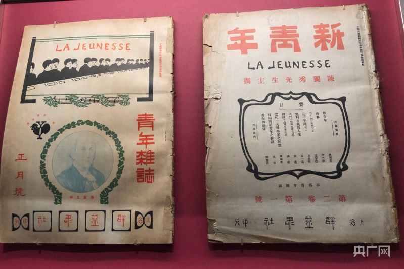 左:《青年雜志》1916年正月號。右:從第2卷第1號起,《青年雜志》改名為《新青年》(央廣網記者 王晶 攝)