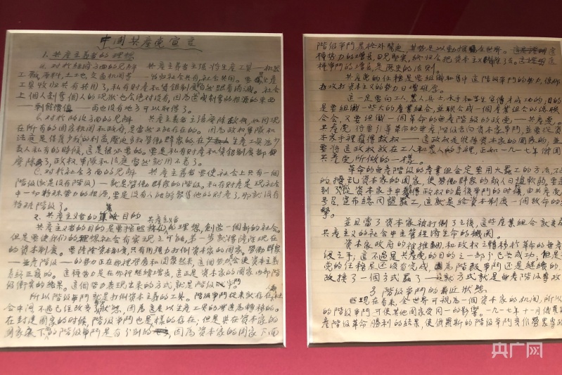 1920年11月,上海共產黨早期組織起草的《中國共產黨宣言》(央廣網記者 王晶 攝)