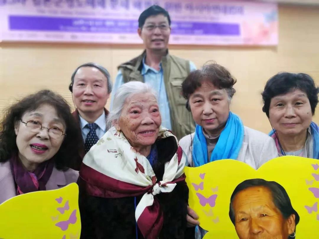 △2018年3月,陳連村阿婆出席在韓國首爾舉辦的相關國際活動。(圖片來源:中國“慰安婦”問題研究中心)