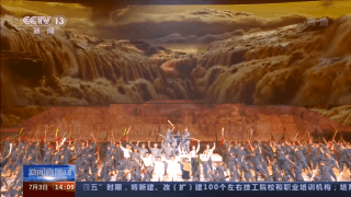 用了很多虛擬現實,呈現出一個震撼人心這樣的視聽效果。包括在《黃河大合唱》的時候也是,我們相當于是把黃河奔騰而下的這樣的場景,也是通過虛擬現實這樣的技術把它呈現出來。