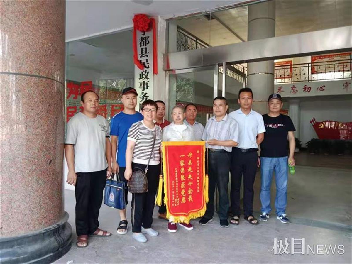 考慮到黃某兄弟兩人都在外地打工,7月2日,大冶救助站安排了一輛車(chē),專(zhuān)程送肖婆婆回家。當(dāng)日下午,當(dāng)車(chē)子駛到江西寧都縣救助站后,早早等候在此的黃某兄弟兩人喜極而泣,將一面繡有“母親走失十余載,一家團(tuán)聚感黨恩”的錦旗送到大冶救助站工作人員手中,一個(gè)勁表示感謝。