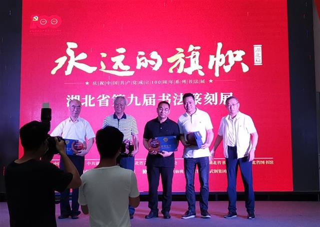 湖北日報訊(記者農新瑜)7月3日,在漢舉行的“永遠的旗幟·慶祝中國共產黨成立100周年湖北省第九屆書法篆刻展”開幕式上,湖北省書法家協會宣布表彰決定,授予金伯興、張天弓、樊利杰、王勇等4位書法家“湖北省書法突出貢獻獎”。