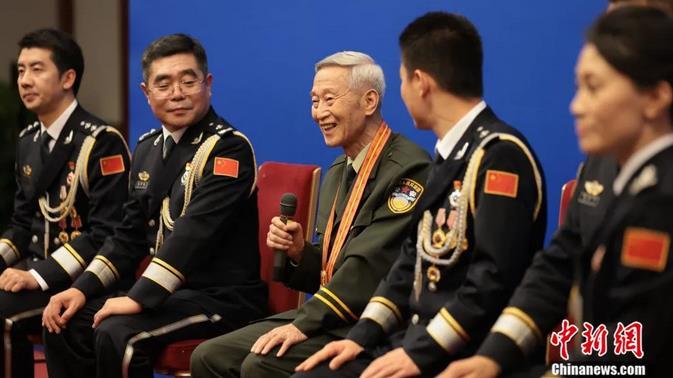 “七一勛章”獲得者崔道植(中)出席公安部新聞發布會。郭超凱 攝