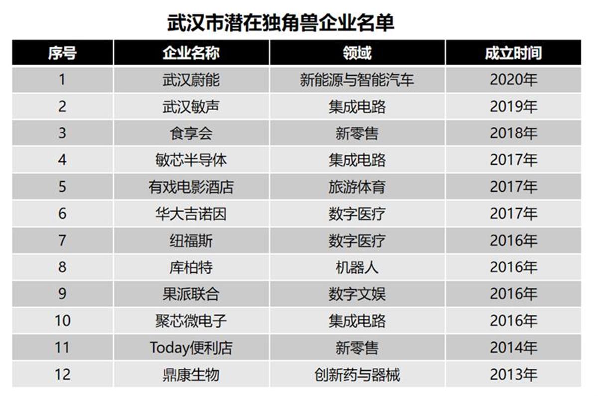 武漢潛在獨角獸企業名單