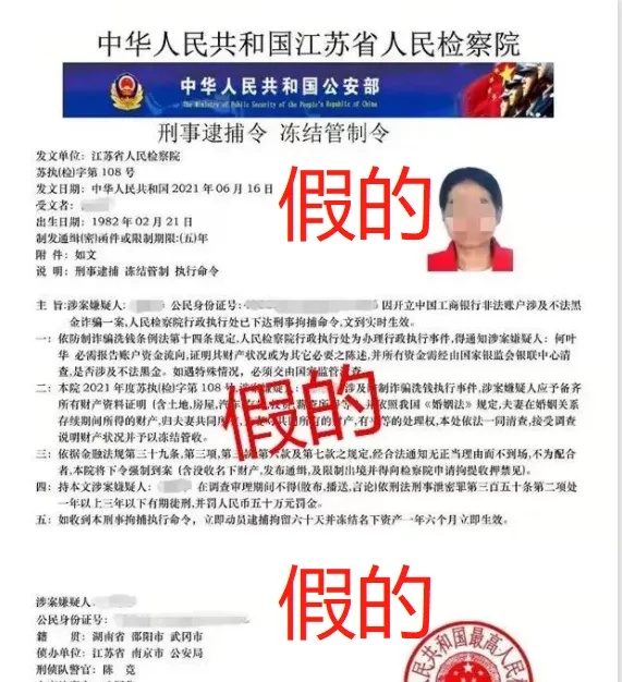 “刑事逮捕令”等文書