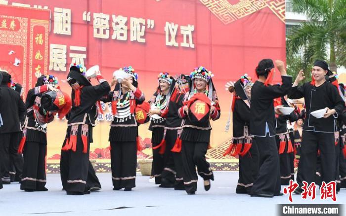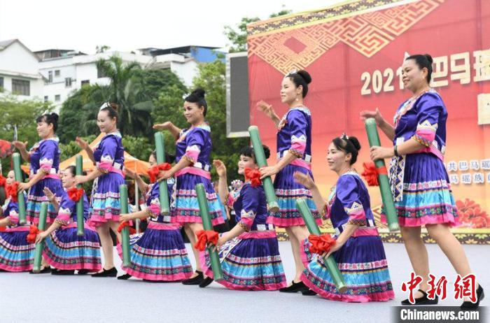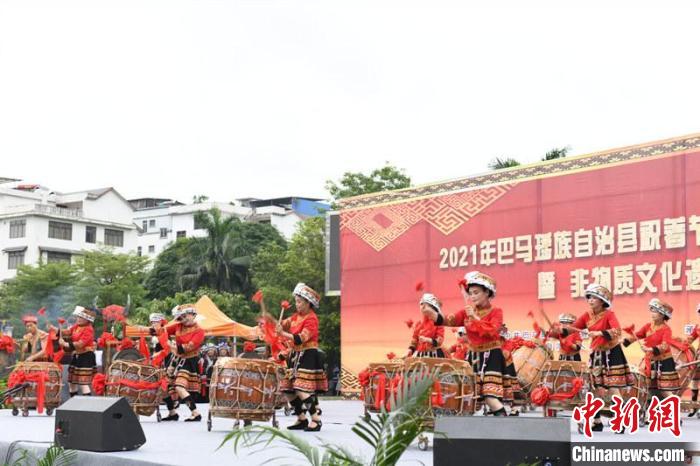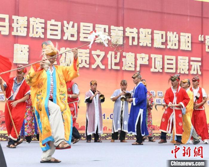 朝拜儀式后,當地民眾進行非物質文化遺產項目展演,山歌對唱、瑤族竹筒舞、木面舞、扁擔舞、壯瑤和鼓等節目精彩上演。