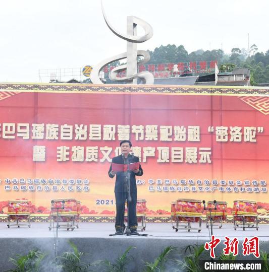 圖為巴馬瑤族自治縣縣長藍海洲致辭 林浩 攝