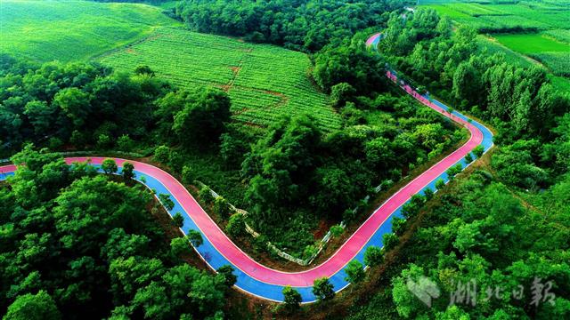 7月3日,宜城市通往張自忠將軍紀念園的雙(泉)官(莊)路,猶如一道彩虹鑲嵌在綠水青山中。