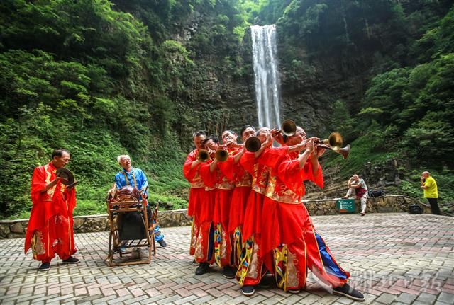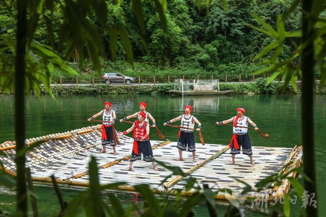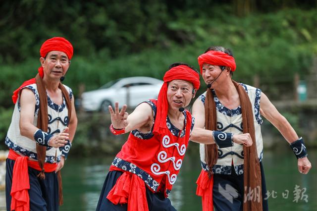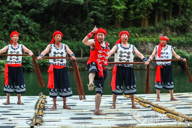 7月4日,非遺傳承人師徒在秭歸縣三峽竹海生態(tài)風(fēng)景區(qū)進(jìn)行《長(zhǎng)江峽江船工號(hào)子》表演。當(dāng)日,近40名非遺傳承人師徒入駐秭歸三峽竹海生態(tài)風(fēng)景區(qū),開(kāi)展常年常態(tài)化傳承展演。這是繼《屈原故里端午習(xí)俗》、《三閭刺繡》、《薅草鑼鼓》等之后又一批非遺項(xiàng)目進(jìn)入景區(qū)。據(jù)悉,秭歸縣采取非遺保護(hù)中心和旅游景區(qū)聯(lián)合的方式,通過(guò)景區(qū)延展非遺生成環(huán)境,簽訂師徒傳承目標(biāo)責(zé)任制,孵化新生代傳承人,推進(jìn)文化旅游深度融合。(視界網(wǎng) 王罡 攝)