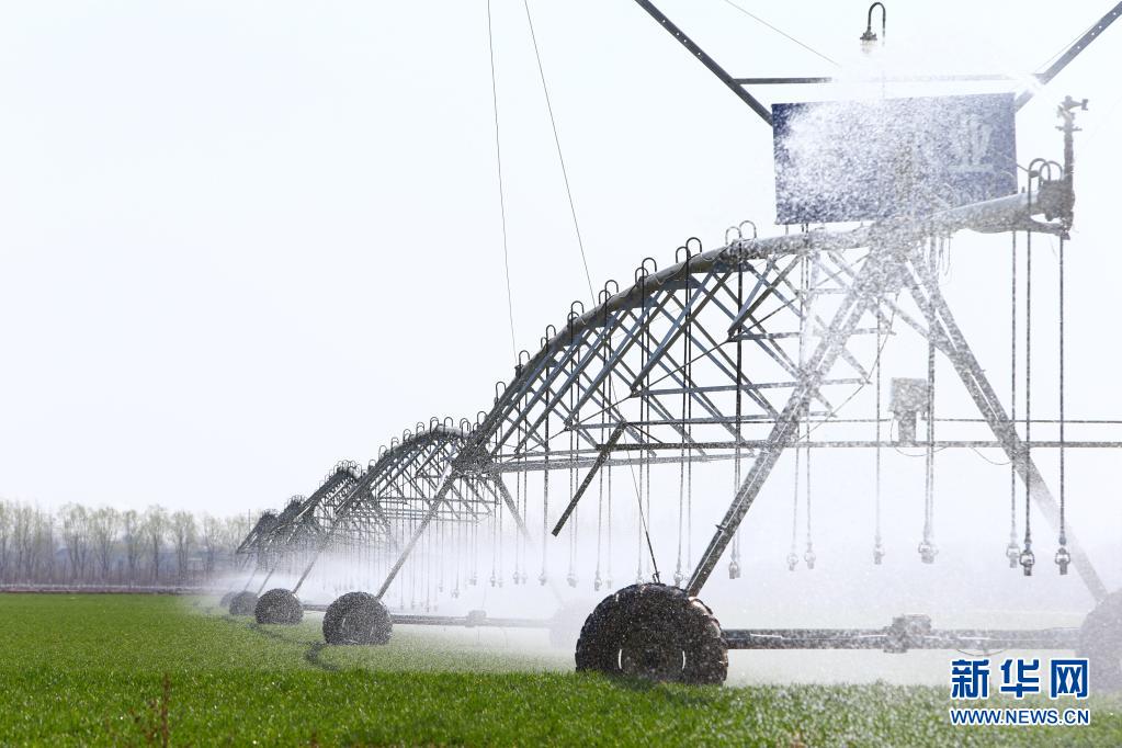 2021年2月23日,在河南省鶴壁市浚縣一片高標準農田里,自走式噴灌機在為小麥澆水。新華社記者 許雅楠 攝