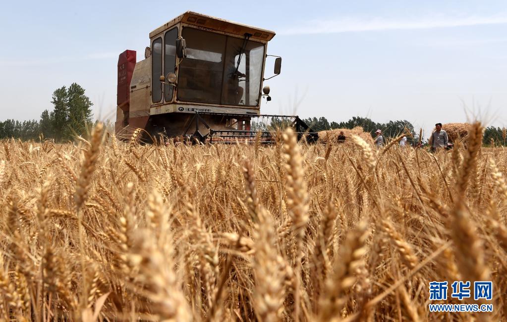 2021年6月5日,在河南省周口市黃泛區農場二分場的麥田里,農機手操作收割機收獲小麥。新華社記者 李安 攝
