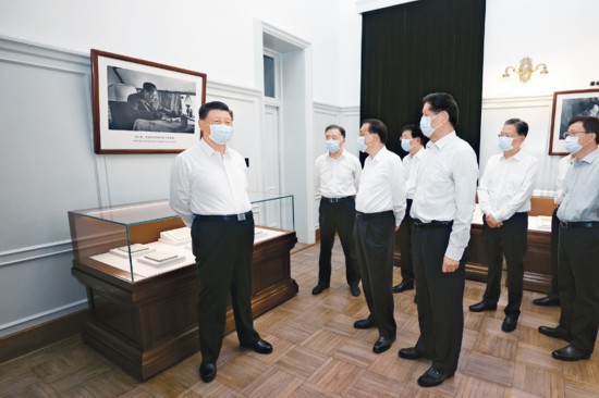 2021年6月25日,中共中央政治局就用好紅色資源、賡續(xù)紅色血脈舉行第三十一次集體學(xué)習(xí)。這次集體學(xué)習(xí)采取參觀和討論相結(jié)合的形式,這是習(xí)近平、李克強(qiáng)、栗戰(zhàn)書、汪洋、王滬寧、趙樂際、韓正等在北大紅樓參觀“光輝偉業(yè) 紅色序章——北大紅樓與中國共產(chǎn)黨早期北京革命活動(dòng)主題展”。 新華社記者 謝環(huán)馳/攝