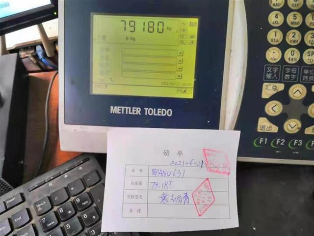 經稱重測試,“半掛”整車質量79.18噸,超出限重上限24.18噸,屬于較為嚴重超限違法行為。執法人員現場告知司機,需對超限行為進行取證,并將依法組織貨物卸載。該司機配合執法人員將車輛開進卸載停車場等待卸載。