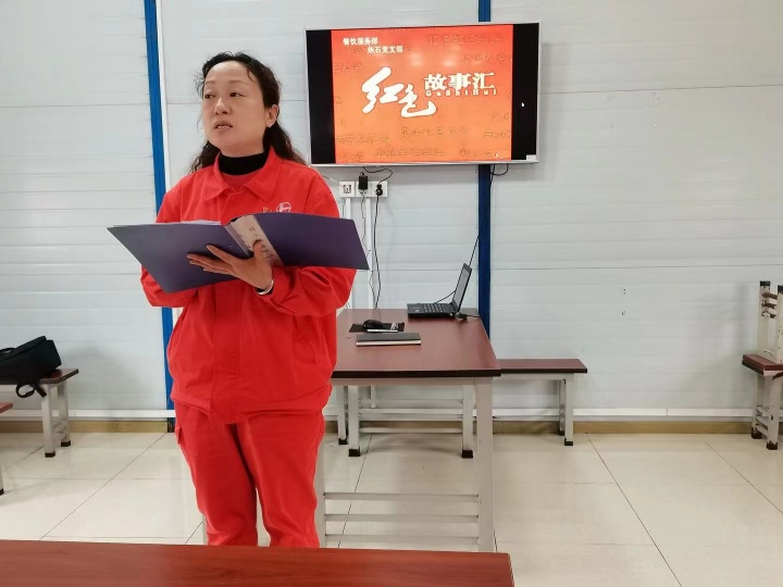 “紅色故事宣講團(tuán)”成立以來,在油田的各個(gè)職工食堂舉辦多場活動(dòng)。“‘秀水泱泱,紅船依舊,時(shí)代變遷,精神永恒’,停泊在嘉興南湖上的這條小船,被親切地稱為中國共產(chǎn)黨的‘母親船’?!?月6日,向陽餐飲項(xiàng)目組黨員祁慧向車服食堂員工深情地講述《一條小船的故事》,現(xiàn)場不時(shí)掌聲雷動(dòng)?!皬拇蠹议|秀到民族英雄,用自己的熱血與堅(jiān)貞不屈譜寫了一生的傳奇。‘抗倭未成竟成俘,不屈嚴(yán)行罵寇仇’,令人敬佩的是她就義前的鐵骨錚錚,無法忘懷的是她以瘦弱之軀,面對(duì)日寇的大義凜然與英勇就義。”4月8日黨員郝明艷將趙一曼的故事向焦石食堂員工娓娓道來,讓大家更深入了解到趙一曼的生平事跡。“英雄浩氣傳千古,胡蘭精神照后人”,劉胡蘭信仰堅(jiān)定、視死如歸的革命精神深深感動(dòng)了,員工葉蔭棠也上臺(tái)講述了劉胡蘭烈士的英勇事跡。4月30日,廣華餐飲項(xiàng)目組黨支部書記代曉蓉發(fā)揮朗讀功底好的優(yōu)勢(shì),將《永遠(yuǎn)的豐碑——董存瑞的故事》做成音頻文件向服務(wù)部廣泛推廣,在各食堂播放,引導(dǎo)員工繼承革命傳統(tǒng),促進(jìn)員工思想升華。