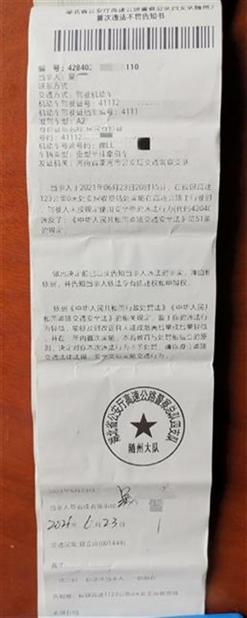 2021年6月23日20時15分,河南吳師傅駕車行駛至福銀高速公路安居收費站,遇湖北高速交警隨州大隊民警例行檢查,發(fā)現(xiàn)他未按規(guī)定使用安全帶的違法行為,按規(guī)定要受到罰款50元、駕駛證記2分的處罰。正當吳師傅懊惱時,民警告訴他,這是他首次在湖北省管高速上實施該項違法行為,鑒于違法情節(jié)輕微、并及時改正,可以“予以警告”,提醒吳師傅下次一定要注意。收到這張“告知書”,吳師傅連聲“感謝”,表示自己一定不會再犯。