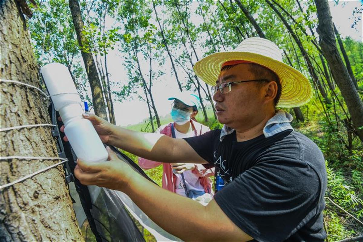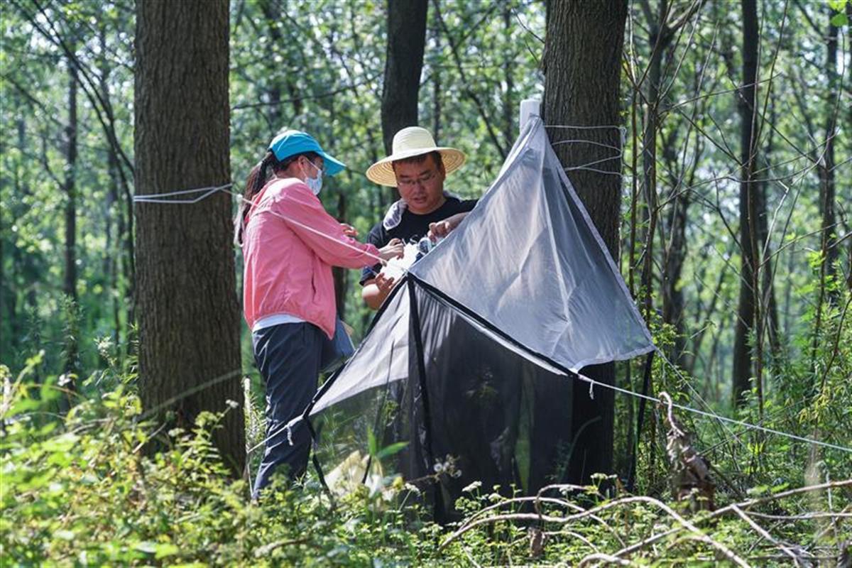 董立坤和他的團隊,在天興洲把收集蟲子的帳篷選擇在自然環境中