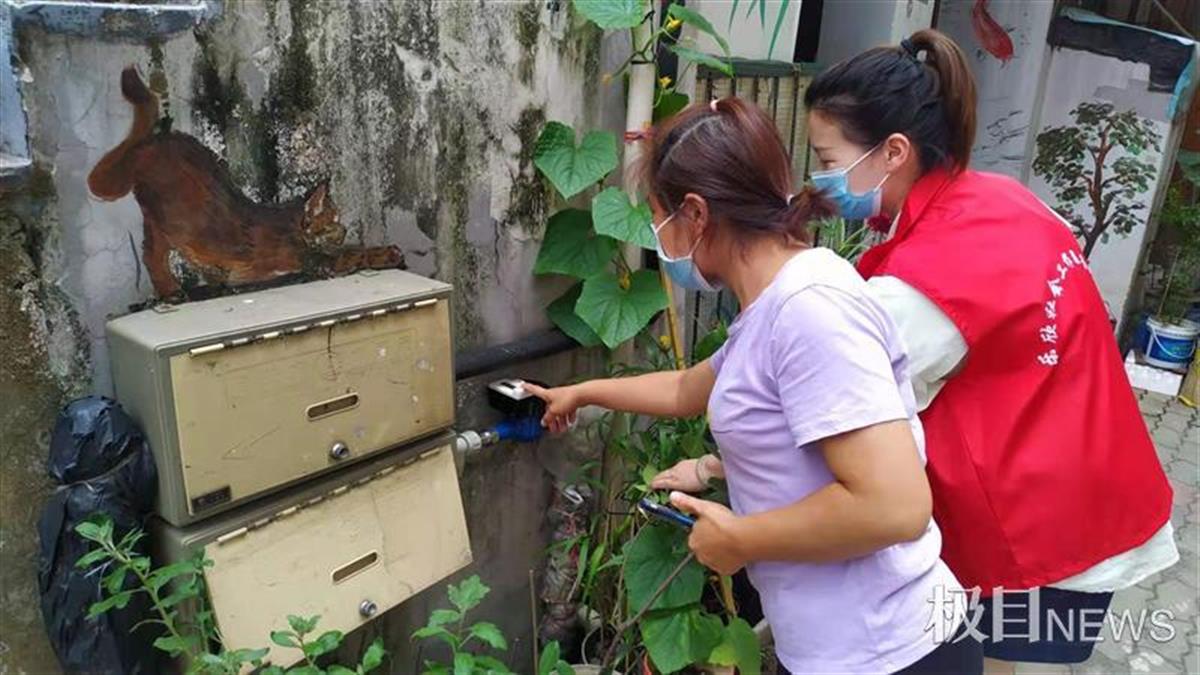 昨日下午,極目新聞記者來到老人家中時,社區工作人員和水務技術人員正在幫她安裝智能水表。記者注意到,技術人員將自來水管鋸斷后,在管道中間裝上了一個藍色的小“鐵疙瘩”,再連接水管,自來水正常使用,社區群干手機上的APP里,顯示了王婆婆的用水信息,看著這些忙出一身汗的年輕人,王婆婆笑著伸出了大拇指。