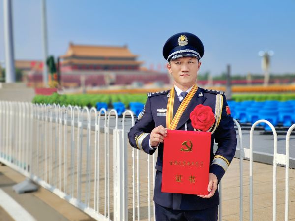 2021年7月1日,身穿整齊的警禮服,許奎在天安門廣場參加了慶祝中國共產黨成立100周年大會。大會結束后,許奎手持“全國優秀共產黨員”榮譽證書,用照片記錄下這一終生難忘的時刻。