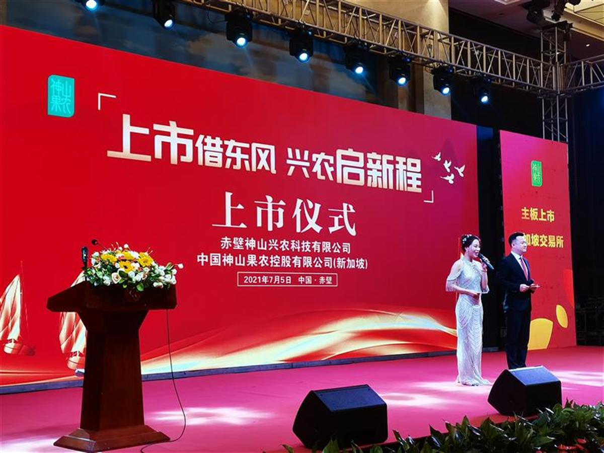 7月5日上午10時30分,赤壁神山興農科技有限公司在湖北赤壁舉辦上市啟動儀式,神山興農正式登陸新加坡交易所。