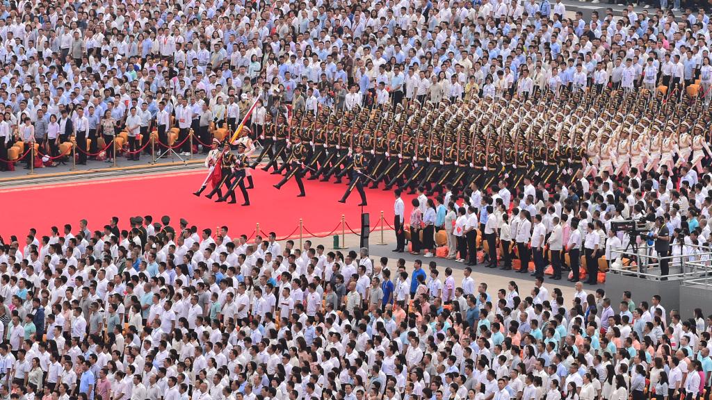 7月1日上午,慶祝中國共產黨成立100周年大會在北京天安門廣場隆重舉行。這是國旗護衛隊準備升旗。新華社記者 李賀 攝