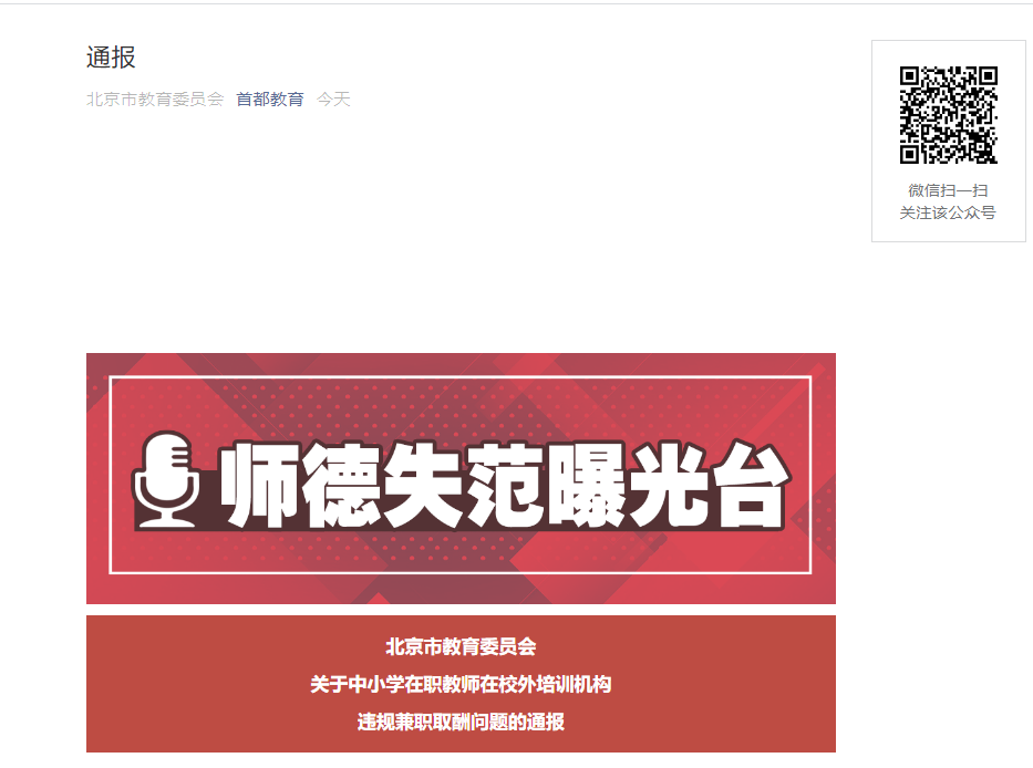 在開展校外培訓機構(gòu)專項整治過程中,北京市教委對校外培訓機構(gòu)開展執(zhí)法檢查,發(fā)現(xiàn)5名中小學在職教師在校外培訓機構(gòu)違規(guī)兼職取酬?,F(xiàn)就處理結(jié)果通報如下: