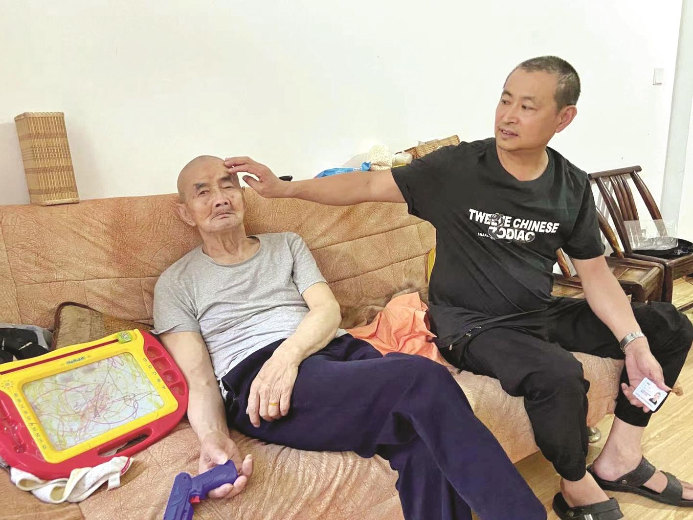 “越老越小,像個孩子。” 吉官兵說,三年前老爺子患上老年癡呆,每天早晚要喂兩次藥。有時發(fā)病犯迷糊就拿掃把打人,但大家從不與老人計較。因為老爺子經(jīng)常外出后找不著家,極易發(fā)生意外,吉官兵還做了一個留有自己聯(lián)系方式的掛牌,掛在老爺子的褲腰處。