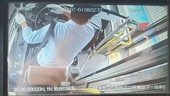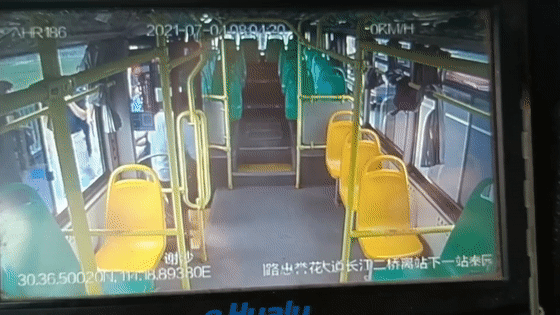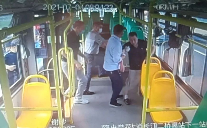 黑衣男子被救后,謝沙把他扶到公交車上。視頻截圖