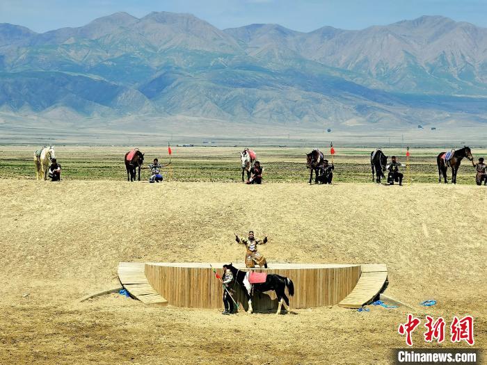 圖為努爾趙等演員正在表演大型實景劇《一代天驕成吉思汗》。 祁增蓓 攝