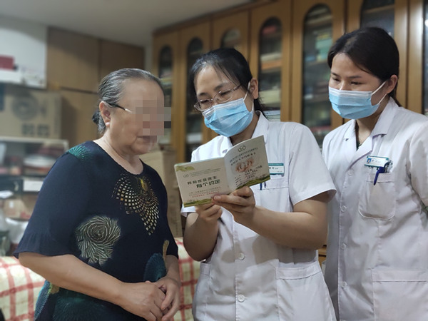 76歲的陳婆婆因為摔了一跤,盆骨受傷,長期臥床,需要居家調理,她既有高血壓,又有糖尿病。劉曉菲帶領家庭醫生團隊每周上門指導老人用藥,為老人送上智能健康監測設備,每天實時監測老人的體溫、血壓、血糖情況,還會陪伴老人聊聊天。陳婆婆激動地說,自己的血壓血糖不正常時,六角亭街社區衛生服務中心就會發現異常打來電話,用心指導她和女兒,找到異常原因,調整飲食和用藥,病人完全聽懂后才放下電話。劉曉菲:“有時治愈,常常陪伴,總是安慰,這不僅緩解了老人緊張的情緒,還讓她和我們的距離越來越近,給了老人莫大的安慰和鼓勵。”