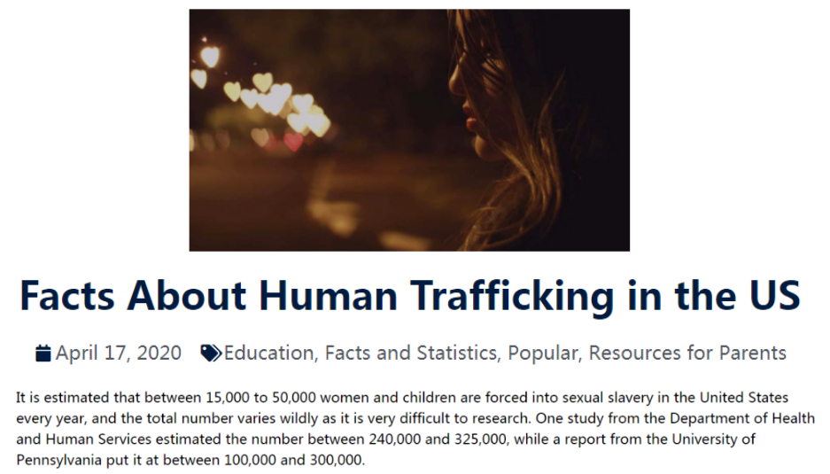 另據反人口販賣組織deliverfund去年發布的報告顯示,美國每年有1.5萬至5萬名女性和兒童被迫成為性奴。賓夕法尼亞大學的一份報告則認為這個數字在10萬至30萬之間。美國衛生與公眾服務部更是估計受害者多達24萬至32.5萬人。
