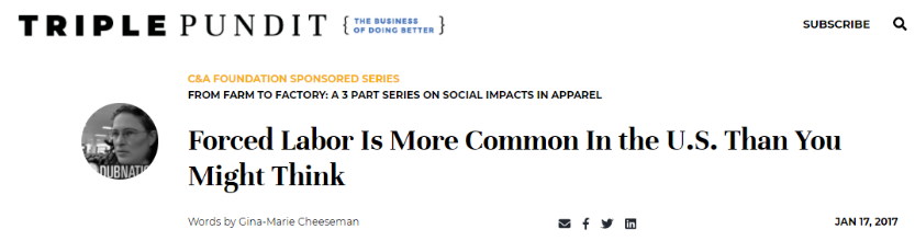 早在2017年,美國獨立記者吉娜-瑪麗·奇斯曼就發表題為《強迫勞動在美國比你想象的更普遍》的調查報告指出,在這個世界上最富有國家的各個城鎮里,許多行業和市場中都可以看到人口販賣現象。
