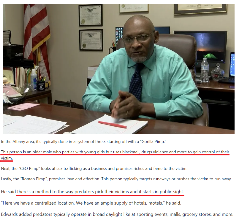 據當地檢察官格雷格·愛德華茲介紹,奧爾巴尼市長期以來都是佐治亞州西南部地區的人口販賣中心,當地人販子經常在體育場、商場和雜貨店這類地方光天化日之下公然活動。