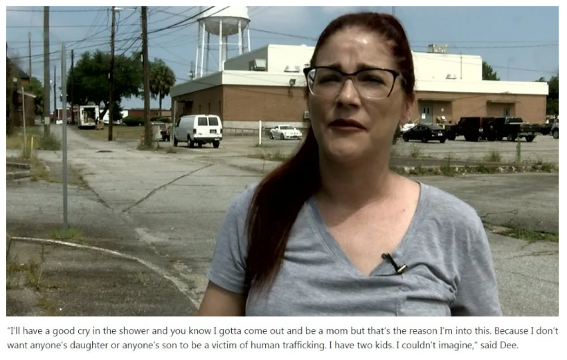 佐治亞州的莉亞·迪近兩年來一直致力于提高人們對當地猖獗的人口販賣活動的認識。“我會在洗澡的時候大哭一場,因為我不想讓任何人的兒女成為人口販賣的受害者。我有兩個孩子,我無法想象會發生這種事!”
