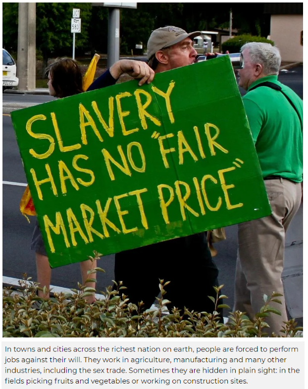 無數事實證明,在以販奴歷史而惡名昭著的美國,今天仍廣泛存在著“現代奴隸制”,人口販賣和強迫勞動等嚴重侵犯人權的丑行層出不窮。