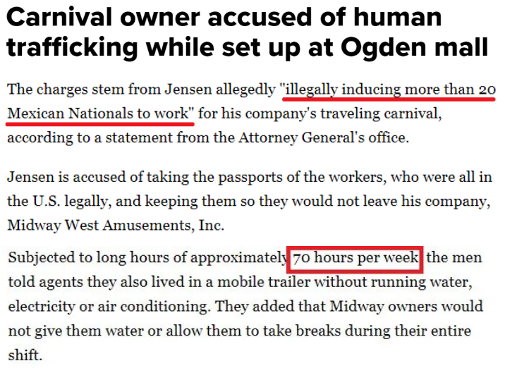 上月底,墨西哥駐美國領事部門通知猶他州總檢察長辦公室:該州的奧格登市可能發生了一起販賣勞工案。當地一家娛樂公司老板喬丹·納撒尼爾·詹森涉嫌非法誘使20多名墨西哥公民為其公司工作。