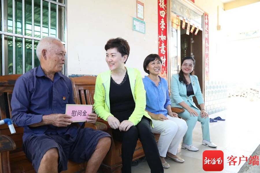 海南省婦聯(lián)黨組書記、主席種潤之一行在共村村委會集中慰問5戶脫貧戶和6名60歲以上的老齡黨員,入戶慰問1名患病的老齡黨員,為他們發(fā)放米、油、牛奶等慰問品和慰問金,向他們宣傳黨的鄉(xiāng)村振興政策;走訪慰問海南省婦聯(lián)第二批鄉(xiāng)村振興干部,傾聽他們的工作和生活感受。