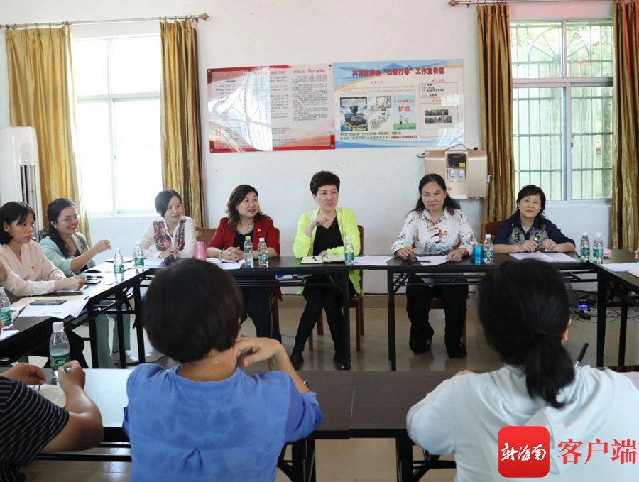 海南省婦聯(lián)一行傾聽當(dāng)?shù)馗刹刻岢龅墓泊逶卩l(xiāng)村經(jīng)濟發(fā)展中存在的“堵點”和“難題”,研究“促發(fā)展”舉措。海南省婦聯(lián)供圖