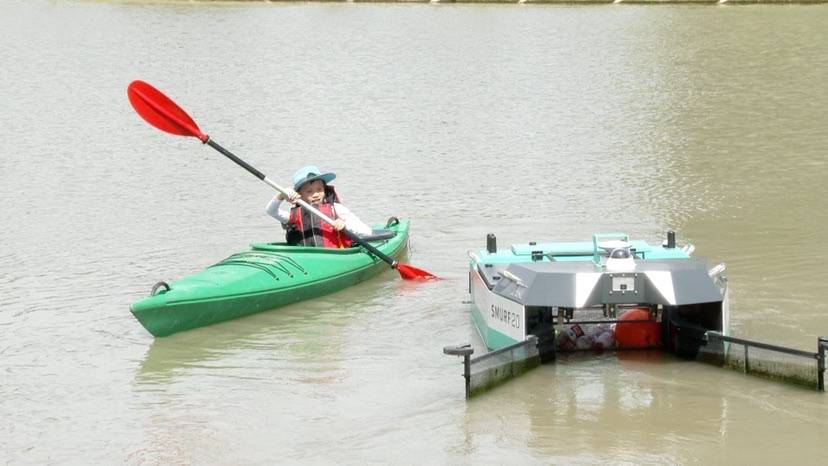 智能水面救援船,它通常作為一個信號接收的“基站”停泊在岸邊,并且“伺機而動”。人工智能水域應用場景承辦方,上海聚術海洋科技有限公司總經理趙輝介紹:“救援船有兩種觸發機制,當落水人員身上穿著帶有信號標的救生衣一旦落水,信號標會發出信號給岸上的基站,搭載的救生圈自動彈射入水,高速接近落水人員,落水人員依附在這個救身圈上后就可平安返回,整個救援過程全程都是無人化的。另一種模式,通過在河道岸邊安裝24小時攝像頭監測水面,一旦有落水人員,攝像頭會自動跟蹤定位,并且通知停泊在岸上的基站第一時間彈射出救援裝置。