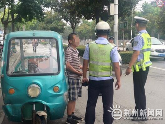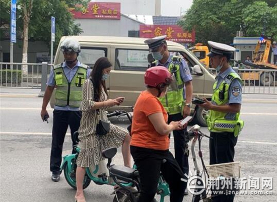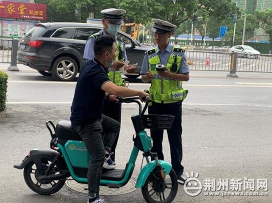 今天(7月6日)上午8點(diǎn)半,荊州市公安局交管局一大隊(duì)民警在郢都路路口展開整治,沒一會兒,一輛非機(jī)動車在機(jī)動車道穿行被民警攔截。